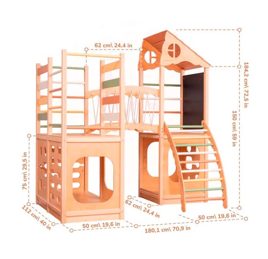 Bring the playground indoors with this Indoor Kids Playground Set with Slide – the perfect solution for active toddlers who love to climb, slide, and explore. Designed with a sturdy wooden frame, this compact jungle gym encourages physical activity, balance, and imaginative play in a safe home environment. With smooth edges, secure construction, and a stylish natural wood finish, it blends seamlessly into any playroom, bedroom, or living area.