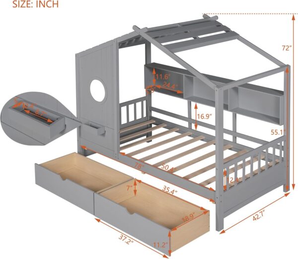 Kids House Bed with Storage & Bookshelf – Functional, Fun & Stylish
