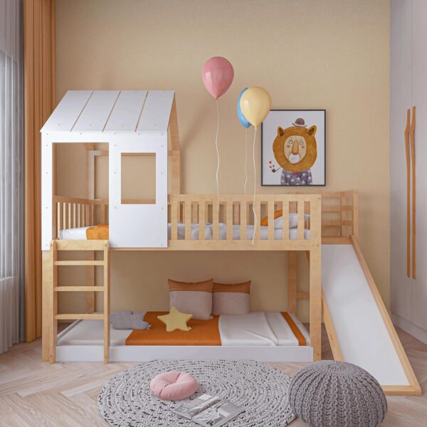 Transform your child’s bedroom into a whimsical adventure with our charming loft bed featuring a built-in slide! Crafted from sturdy wood, this delightful bed not only provides a cozy sleeping space but also encourages imaginative play and fun. The slide adds an exciting twist to bedtime, making it a favorite spot for kids to climb up and glide down. Perfect for maximizing space, this loft bed is designed to inspire creativity while keeping your child’s room organized and stylish. Give your little one the gift of adventure and comfort with this enchanting addition to their bedroom!