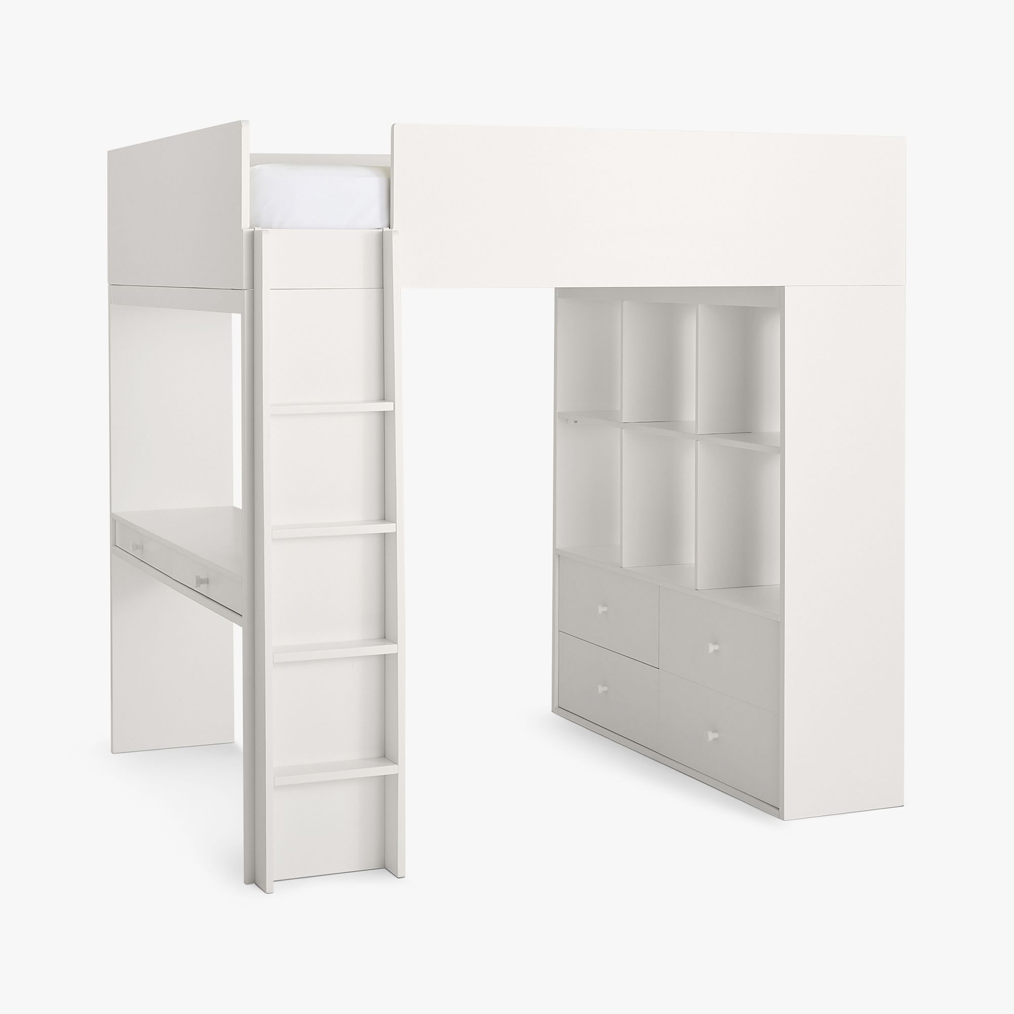 Transform Your Child’s Room with Our Multi-Functional White Loft Bed with Desk & Storage